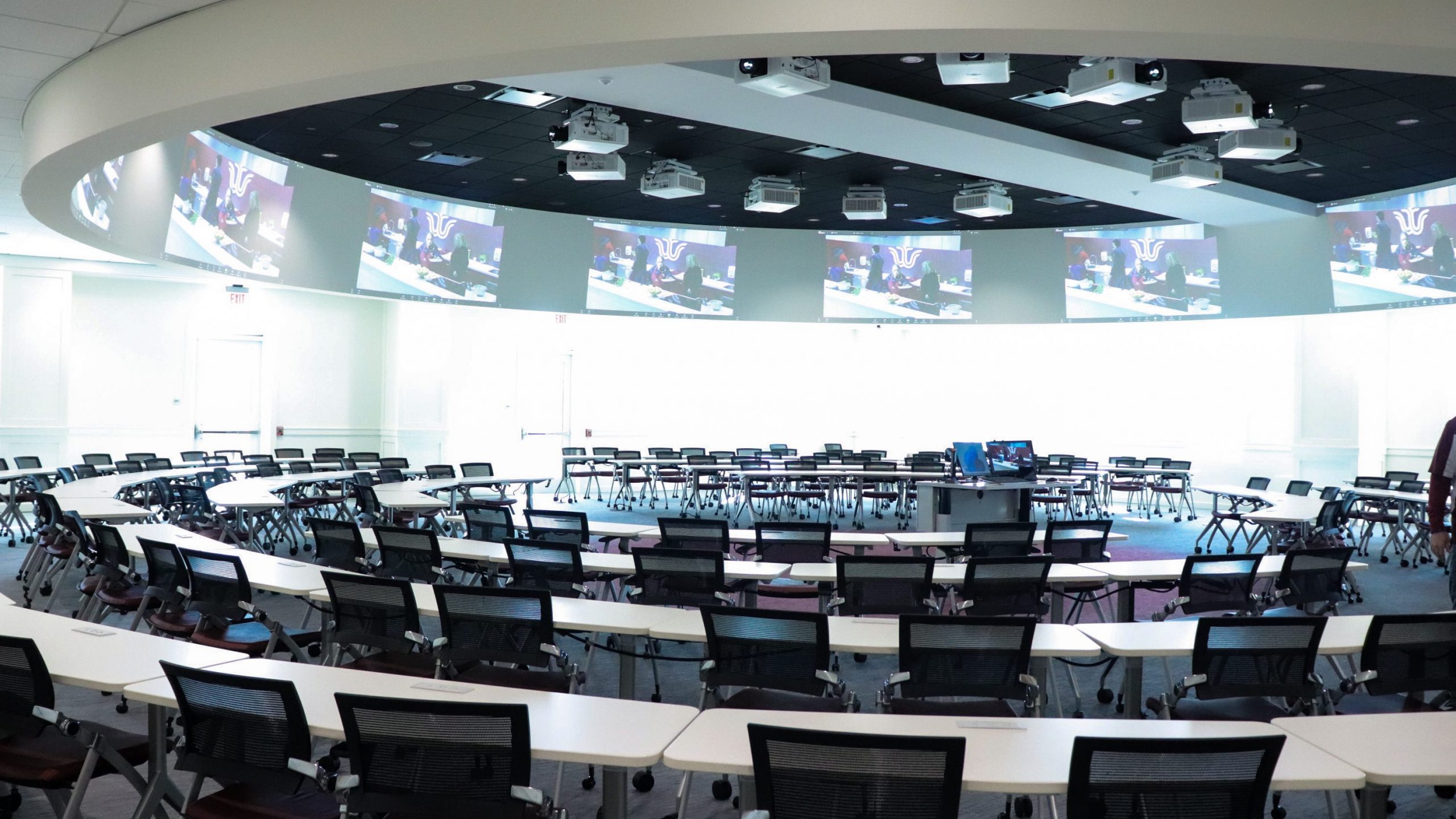 After the ribbon cutting, attendees toured the building, walking through simulation spaces, extended reality rooms and collaborative study areas.