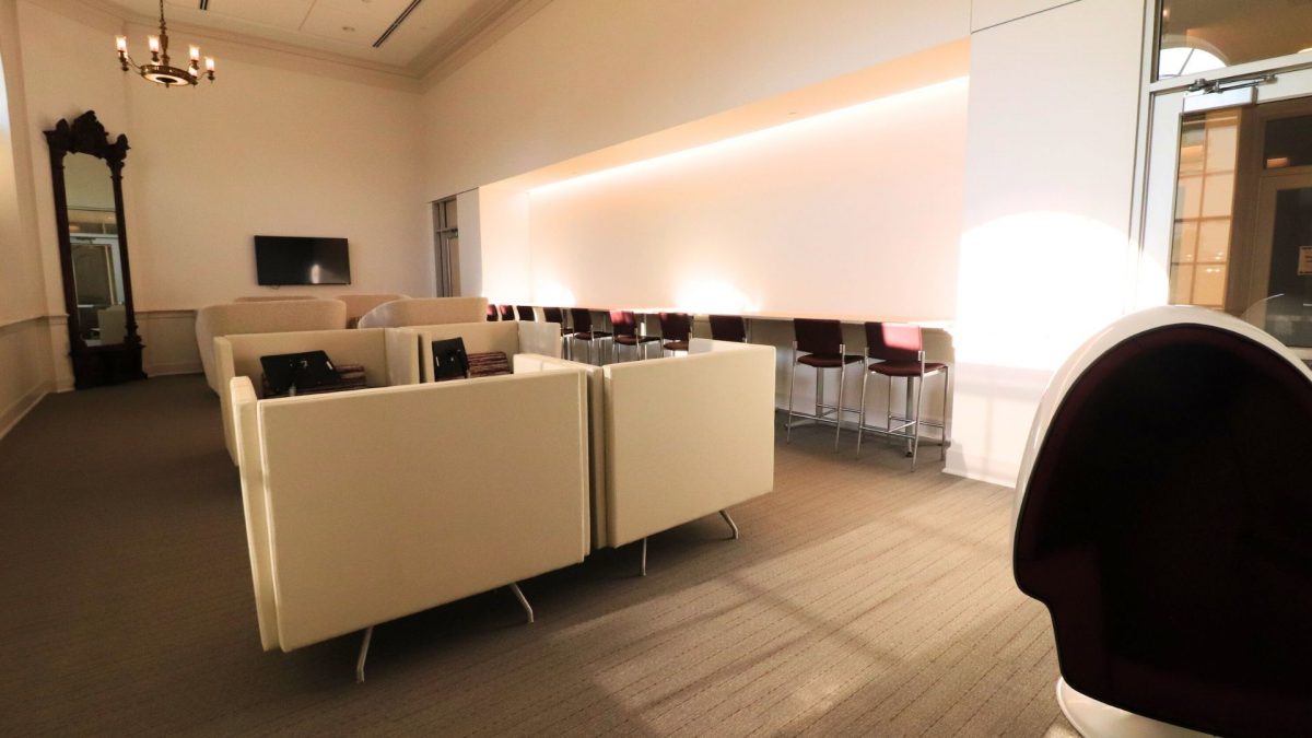 Craving a sweet treat, have some extra time to study, or maybe just searching for a place to chill before your next class? Look no further than the silent room on the second floor of Hubbard Hall! Located right across from Bunsen Tea Lab, the silent room is a no-talking zone and a quiet reprieve from the noisy rush of college life. This room is perfect for scrolling on your phone, taking a quick power nap in what I have endearingly named ‘the egg,’ or private individual study. This room gets busy as the day goes on and tends to be the fullest in the early afternoon. I suggest coming either early in the morning or in the late afternoon.
