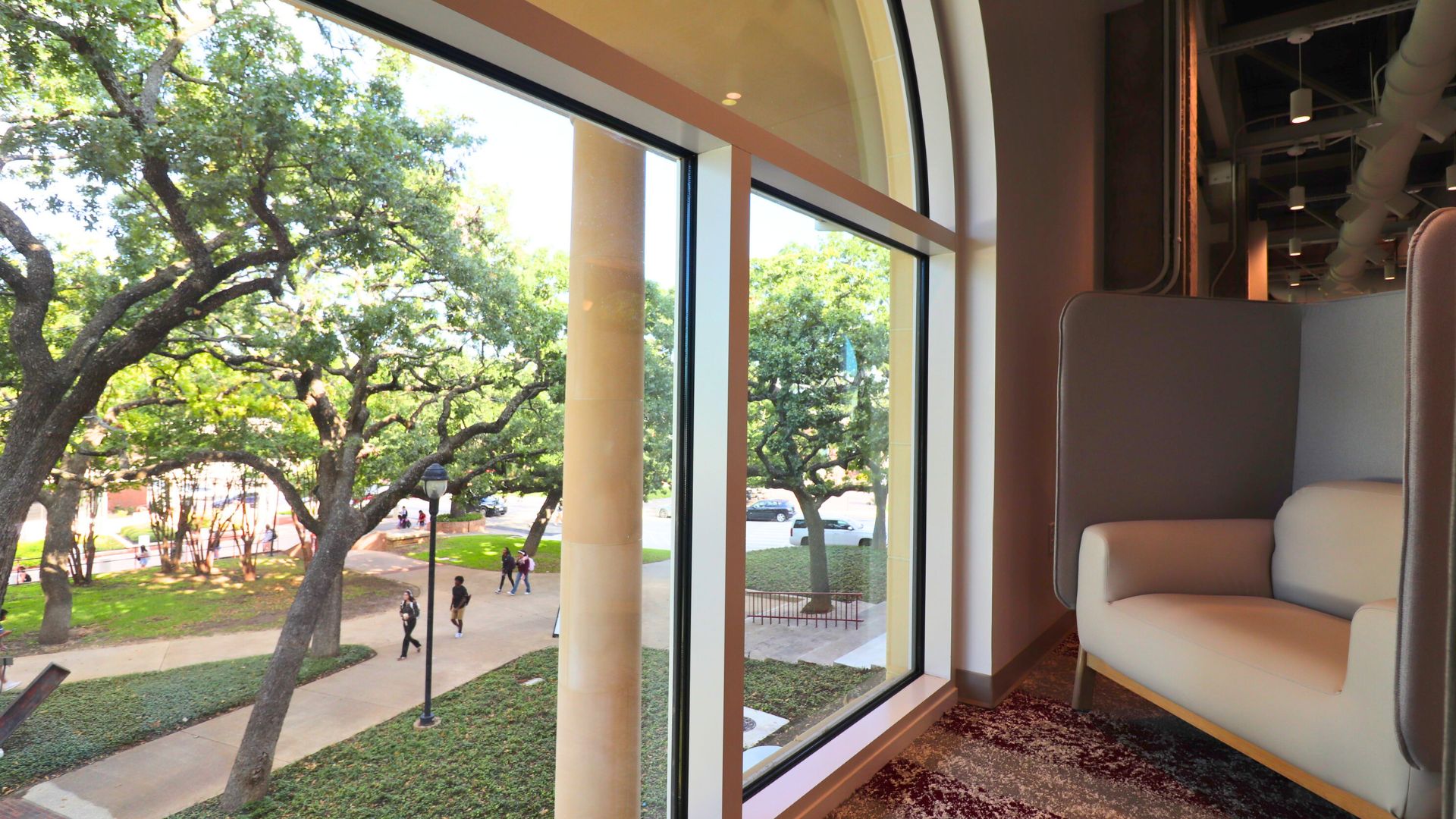 If a private area with a view is what you’ve been searching for, then head on over to Brackenridge. Located on the third floor are comfortable chairs with privacy shades and small tables that can be moved around as needed. This area overlooks gorgeous greenery and the aesthetic view would go great with a coffee from The Hoot on the second floor. The farther down the row of chairs you go, the more intimate the space feels. As the building has just reopened, I can’t rate the busyness of this area; however, I’m sure that the foot traffic will pick up soon.